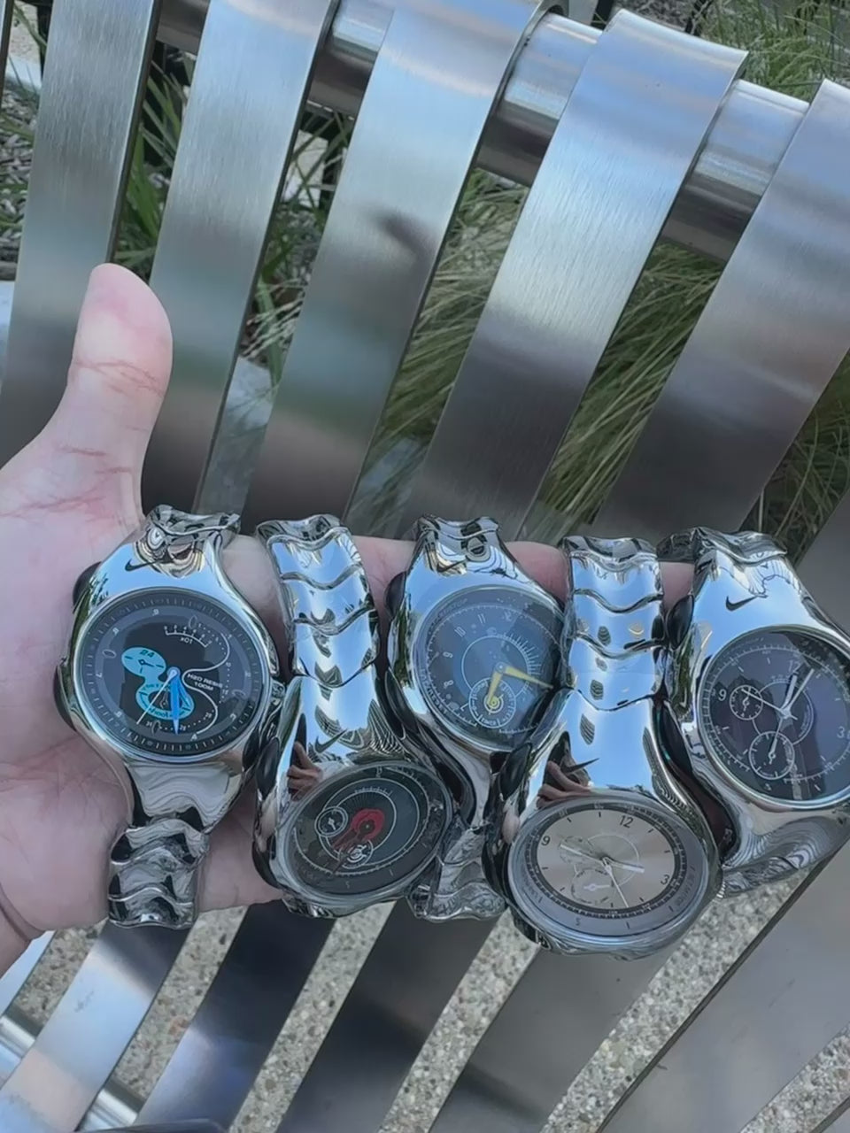Nike Triax Chronograph Watch Shiny Silver with blue black dial – Vintage Grey Stainless Steel Sports Watch, Rare Collectible Timepiece