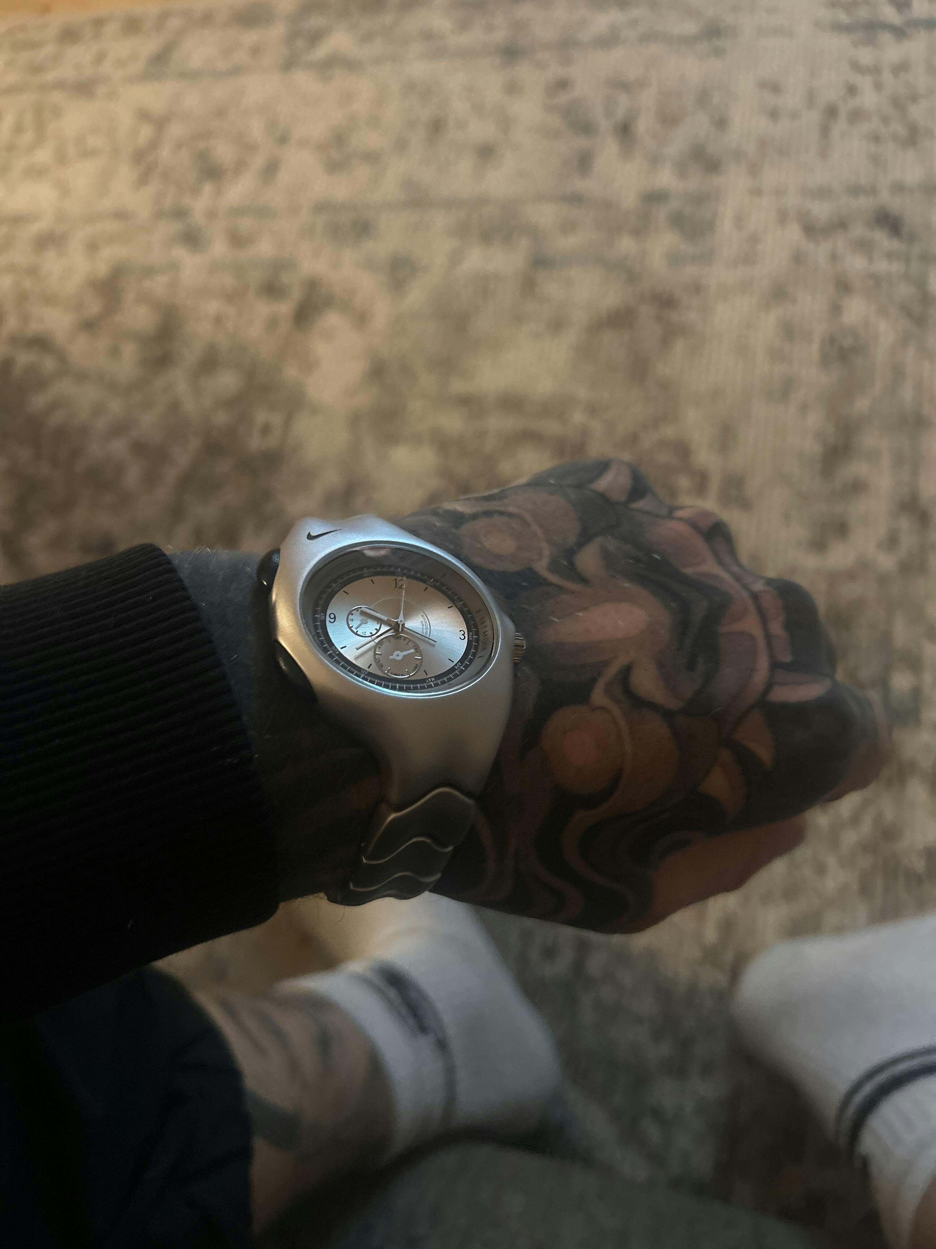 This Nike Triax Chronograph Watch in Matte Silver is a rare vintage piece that showcases Nike’s innovative design and iconic sportswear heritage. With its distinctive curved ergonomic shape and chronograph functionality, this Triax model offers both comfort and performance. The matte silver/grey finish gives it a bold yet understated look — perfect for everyday wear or as part of a collector’s showcase.